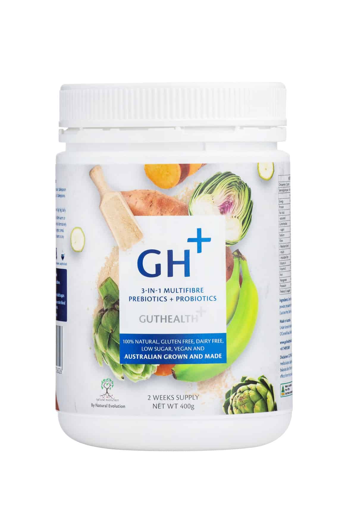- Prebiotic – feed your microbiome and heal your gut. Green Banana Resistant Starch encourages the growth and activity of microorganisms (e.g. bacteria and fungi) this contributes to the well-being of their host (you!).