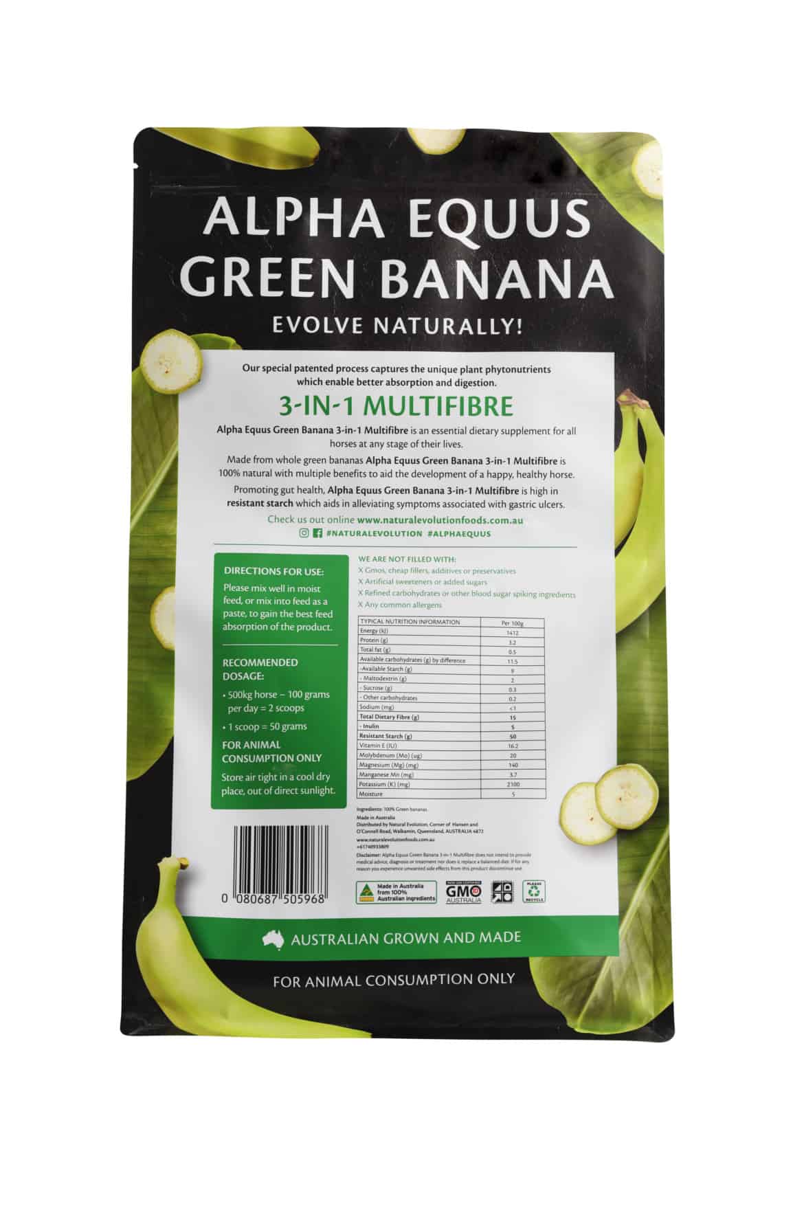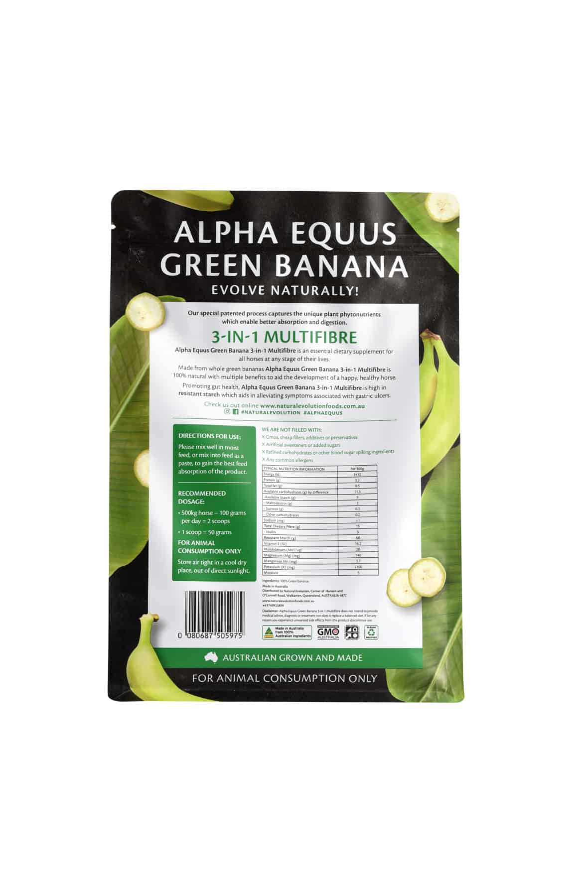 Alpha Equus Green Banana 3-in-1 Multifibre is an essential dietary supplement for all horses at any stage of their lives.